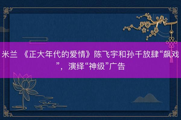 米兰 《正大年代的爱情》陈飞宇和孙千放肆“飙戏”,演绎“神级”广告