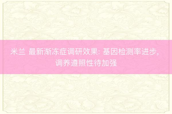 米兰 最新渐冻症调研效果: 基因检测率进步, 调养遵照性待加强