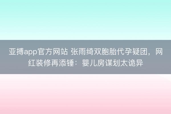 亚搏app官方网站 张雨绮双胞胎代孕疑团,网红装修再添锤:婴儿房谋划太诡异