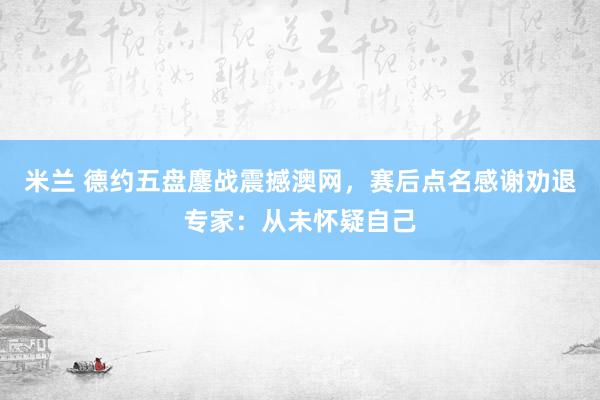 米兰 德约五盘鏖战震撼澳网,赛后点名感谢劝退专家:从未怀疑自己