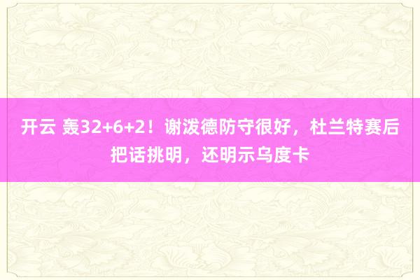 开云 轰32+6+2!谢泼德防守很好,杜兰特赛后把话挑明,还明示乌度卡