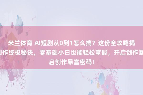米兰体育 AI短剧从0到1怎么搞?这份全攻略揭秘爆款创作终极秘诀,零基础小白也能轻松掌握,开启创作暴富密码!