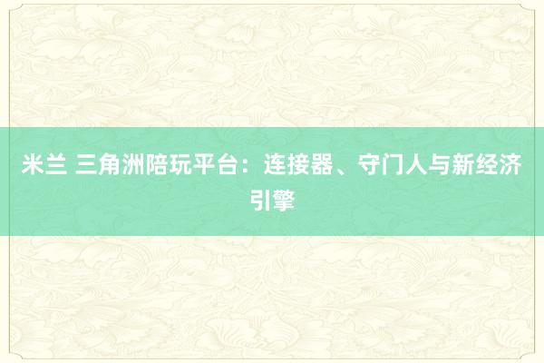 米兰 三角洲陪玩平台:连接器、守门人与新经济引擎