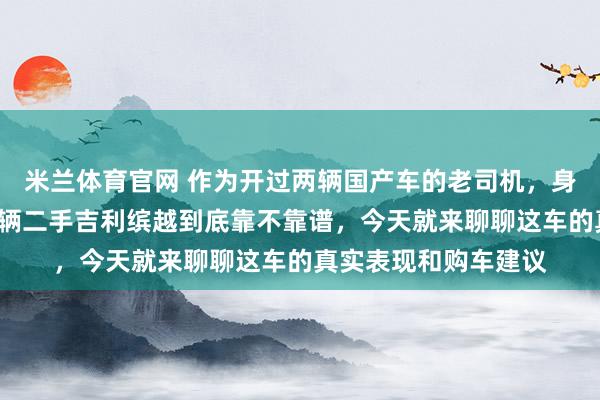 米兰体育官网 作为开过两辆国产车的老司机,身边朋友问我5万块买辆二手吉利缤越到底靠不靠谱,今天就来聊聊这车的真实表现和购车建议