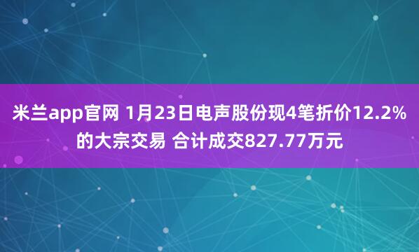 米兰app官网 1月23日电声股份现4笔折价12.2%的大宗交易 合计成交827.77万元