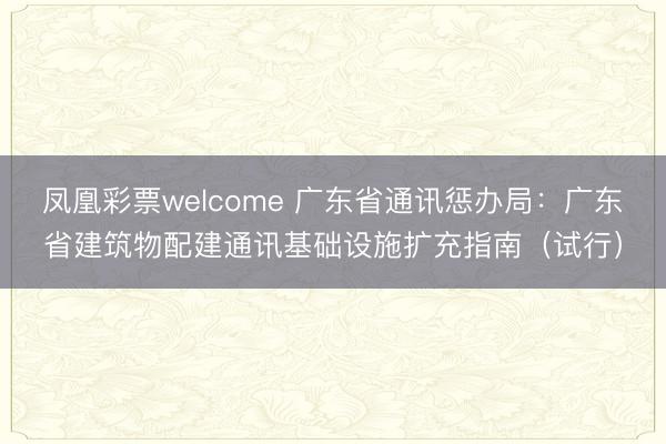 凤凰彩票welcome 广东省通讯惩办局:广东省建筑物配建通讯基础设施扩充指南(试行)