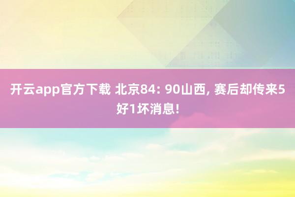 - 开云app官方下载 北京84: 90山西, 赛后却传来5好1坏消息!