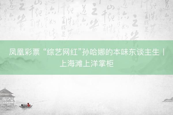 凤凰彩票 “综艺网红”孙哈娜的本味东谈主生丨上海滩上洋掌柜