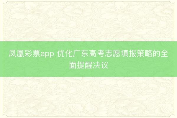 凤凰彩票app 优化广东高考志愿填报策略的全面提醒决议