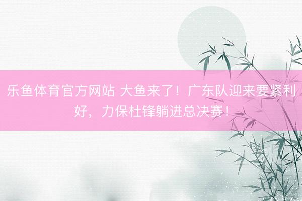 乐鱼体育官方网站 大鱼来了!广东队迎来要紧利好,力保杜锋躺进总决赛!