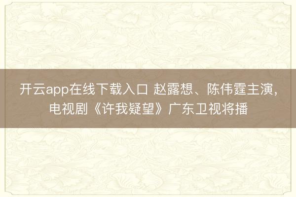 开云app在线下载入口 赵露想、陈伟霆主演,电视剧《许我疑望》广东卫视将播
