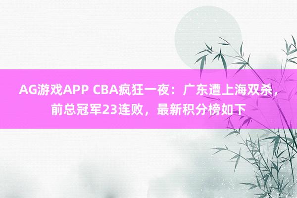 AG游戏APP CBA疯狂一夜:广东遭上海双杀,前总冠军23连败,最新积分榜如下