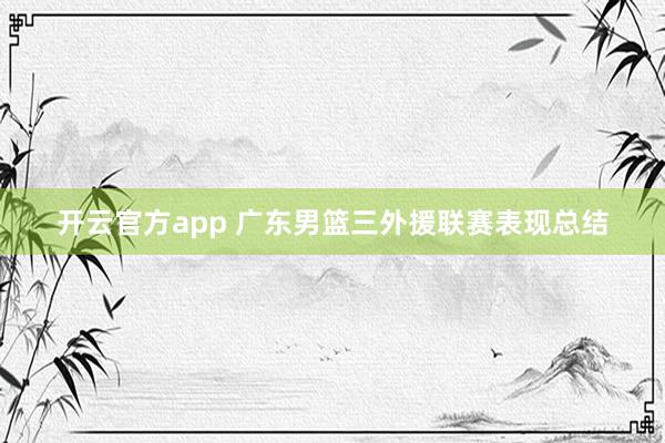 - 开云官方app 广东男篮三外援联赛表现总结