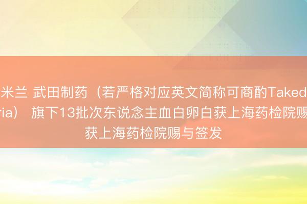 米兰 武田制药(若严格对应英文简称可商酌Takeda Austria) 旗下13批次东说念主血白卵白获上海药检院赐与签发