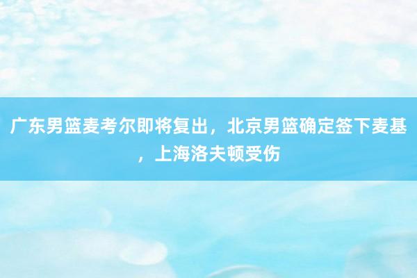 广东男篮麦考尔即将复出,北京男篮确定签下麦基,上海洛夫顿受伤
