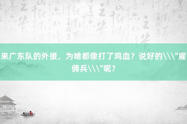 来广东队的外援,为啥都像打了鸡血?说好的\"雇佣兵\"呢?