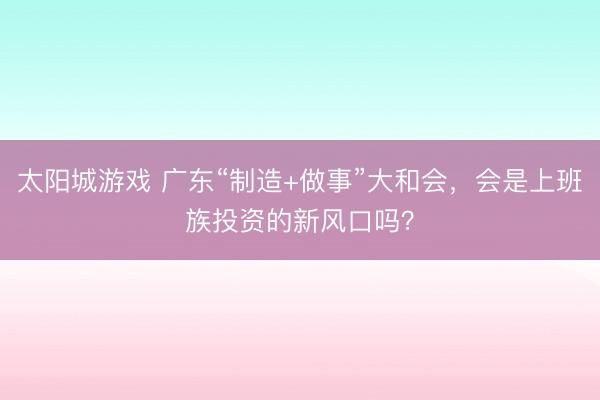 太阳城游戏 广东“制造+做事”大和会,会是上班族投资的新风口吗?