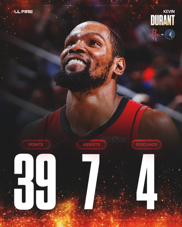 休斯顿火箭官方账号报道。凯文·杜兰特砍下赛季最高分,阿尔佩伦·申京贡献两双数据,开云带领球队主场取胜@KDTrey5|@alperennsengun