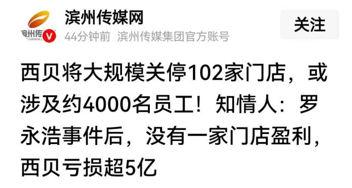 开云app在线体育 西贝将关停102家店, 贾国龙: 罗永浩事件后亏损超5亿, 没一家盈利