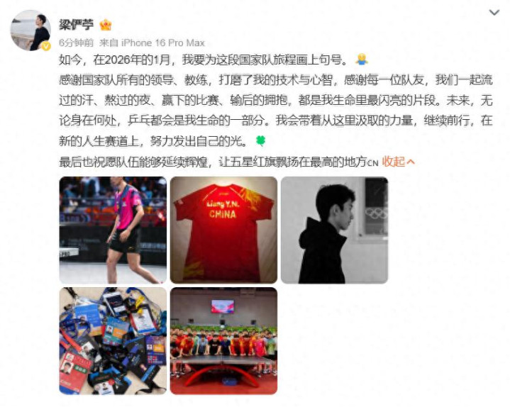 2026年1月17日,24岁的乒乓球运动员梁俨苧在社交平台发文,宣布退出中国国家乒乓球队,他在声明里感谢了领导、教练和队友的帮助,表示将带着从这里汲取的力量继续前行,梁俨苧写道:“未来,无论身在何处,乒乓都会是我生命的一部分。”这位曾被寄予厚望的国乒新星,在2026年1月正式结束了自己的国家队旅程,这位2001年2月出生的年轻选手,曾被视为国乒的希望之星,如今在距离25岁生日仅一个月时选择离队,引发了乒乓球界的广泛关注