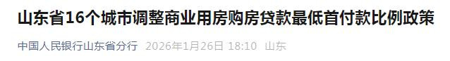 为贯彻落实党中央、国务院决策部署,适应房地产市场供求关系的新变化,支持构建房地产发展新模式,根据《中国人民银行 国家金融监督管理总局关于调整商业用房购房贷款最低首付款比例政策的通知》(银发〔2026〕14号)要求,中国人民银行山东省分行会同金融监督管理部门根据城市政府调控要求,开云app在线体育按照因城施策原则,指导山东省市场利率定价自律机制对山东省16个城市的商业用房购房贷款最低首付款比例政策作出以下调整: