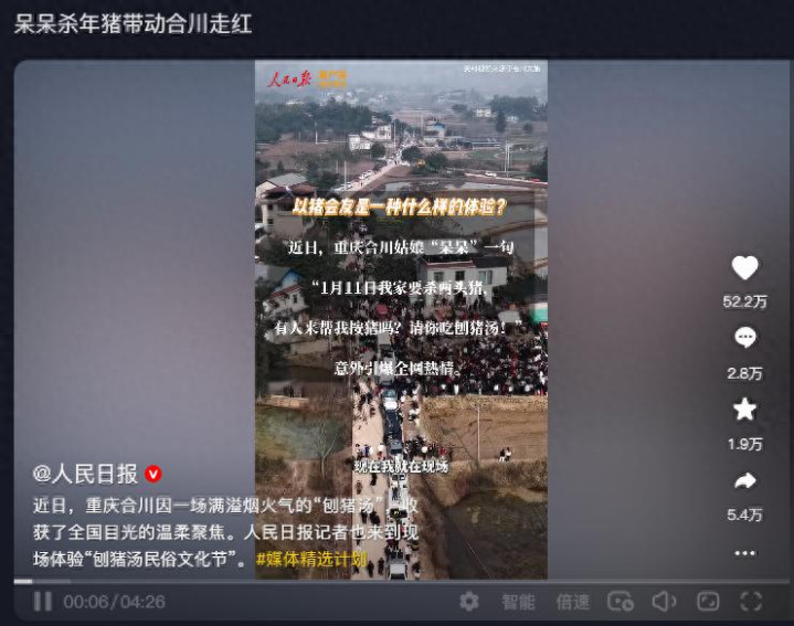 呆呆刨猪宴火了,人民日报、央视等官媒纷纷报道转发,农村日报、人民日报记者更是赶到合川对呆呆进行了专访。