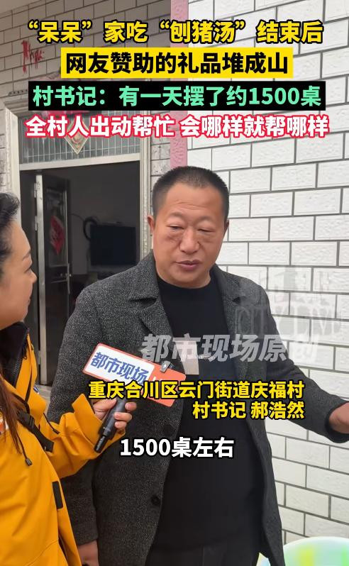 呆呆村支书透露,杀猪宴2天,最多一天开了近1500桌,全村人都出动,擅长什么就帮做什么。