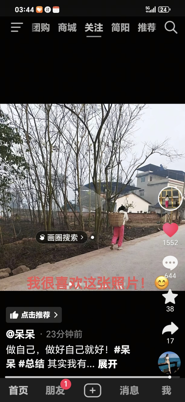 最让人感动得是,呆呆晒了一张自己的照片,呆呆自己也表示,自己也很喜欢,一个人背着背篓,负重前行。