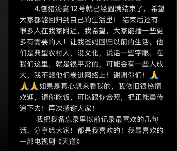 其四,呆呆表示,杀猪宴圆满结束至今,已经过去3天了。希望大家能回归到自己的生活中。