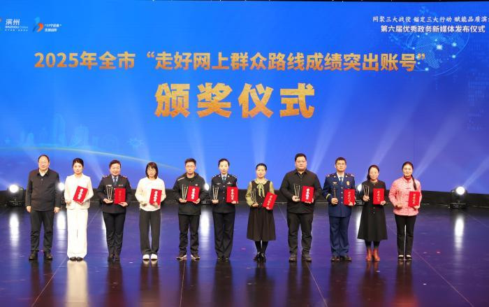 活动现场,集中发布了2025“好评滨州”网络评论大赛、2025年度“品质滨州”正能量网络精品、2025年滨州市“走好网上群众路线成绩突出账号”以及2025年度“品质滨州”十佳政务微信公众号、新锐政务微信公众号、优秀政务微博账号、优秀县级融媒体抖音账号等多个奖项,集中展示了过去一年滨州网络新媒体宣传矩阵的丰硕成果和崭新面貌。