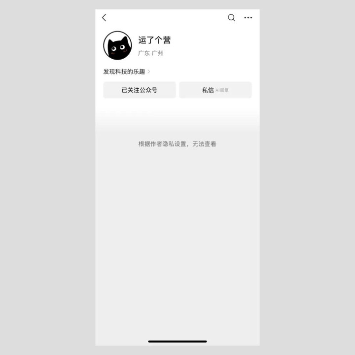 被拉黑的用户现已无法查看公众号主页的历史消息,界面会显示“根据作者隐私设置,无法查看”。
