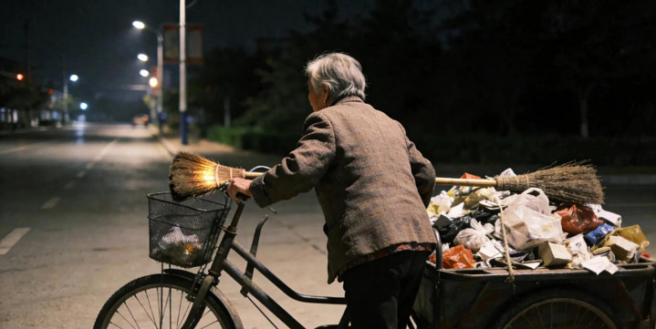 李玉坤奶奶51岁那年当上环卫工,从那时候起,凌晨四点的街头就总有她的身影。天不亮就出门,扫完街就捡塑料瓶、旧纸箱,三轮车车斗里总堆得像小山似的。别人问她这么大岁数咋还这么拼,她总说:“能干动就多干点,孩子们上学等着用钱呢。”